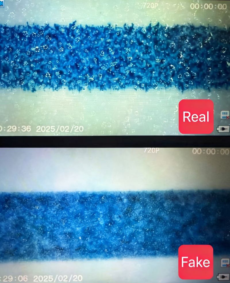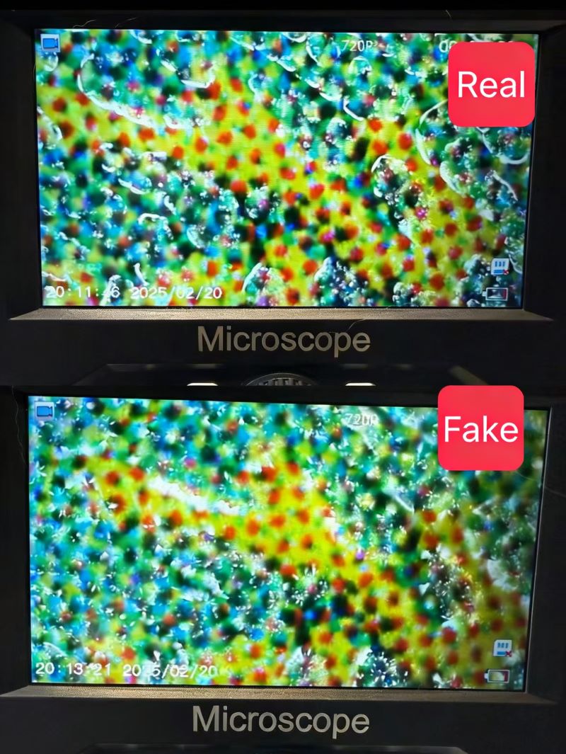 These are the most obvious differences. With a magnifying glass, check the back printing: genuine print is slightly blurry with a sprayed texture, while fakes look unnaturally sharp and clear.