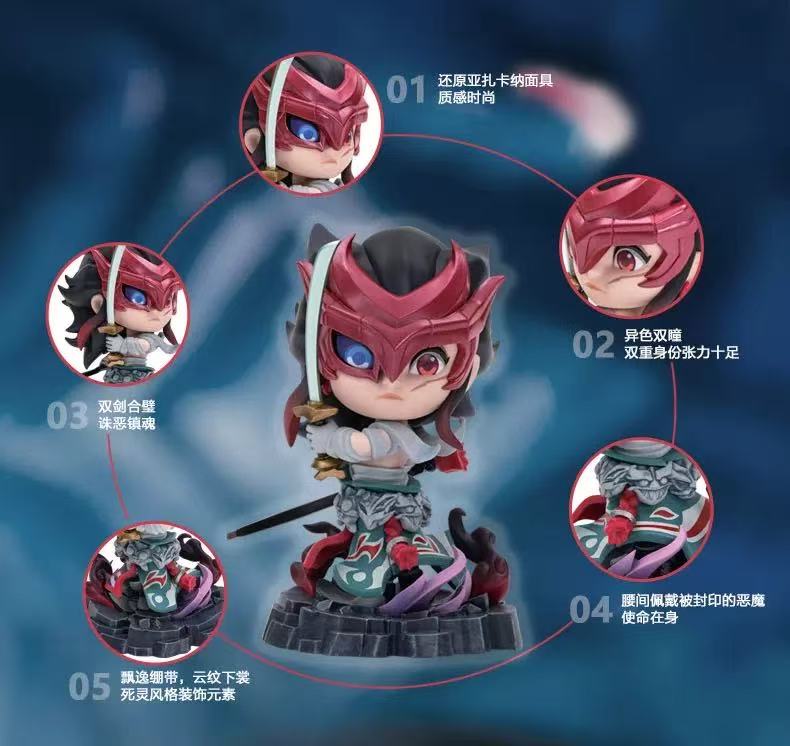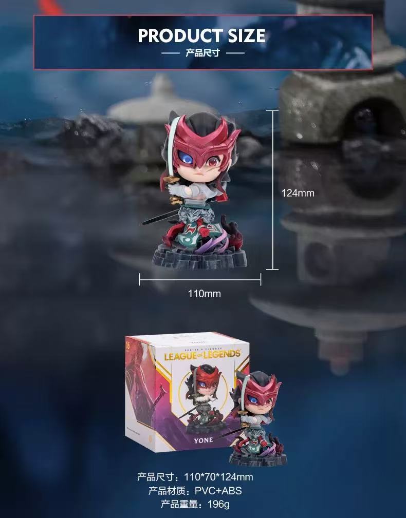 Genuine LOL League of Legends Yone The Unforgiven Q-version Figure Game Peripheral Desktop Ornament Collection Gift