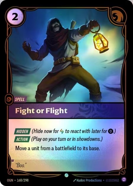 Fight or Flight being included in the first set is entirely a design oversight from the developers. Riftbound is fundamentally a game about contesting battlefield positions—directly removing one of the opponent’s high-value units almost guarantees you win the combat and secure a crucial point. Not only that, this card can also protect your own high-value units, and its synergy with Draven’s snowballing potential is incredibly strong. What’s more, as a Standby card, it only costs a small amount of Rune or gold to activate. High-cost characters with no enter-the-battlefield effect are basically heavily countered and suffer badly: you can use it to retreat with synergies, and a single activation can render a huge number of cards completely ineffective.