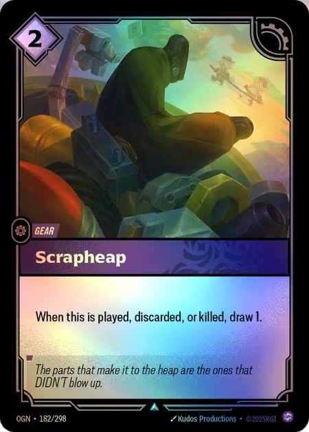 Scrapheap itself is not very strong in terms of single-card power, but there are many discard methods in the current meta, which has greatly increased the value of this card, making it equivalent to drawing a free card. Purple’s card draw ability is extremely terrifying, and this card leverages the discard pile mechanics, so all discard archetypes will consider including it. However, I did not expect it to be banned.There are some hand disruption cards in Set 3, and Scrapheap can even counter these cards.