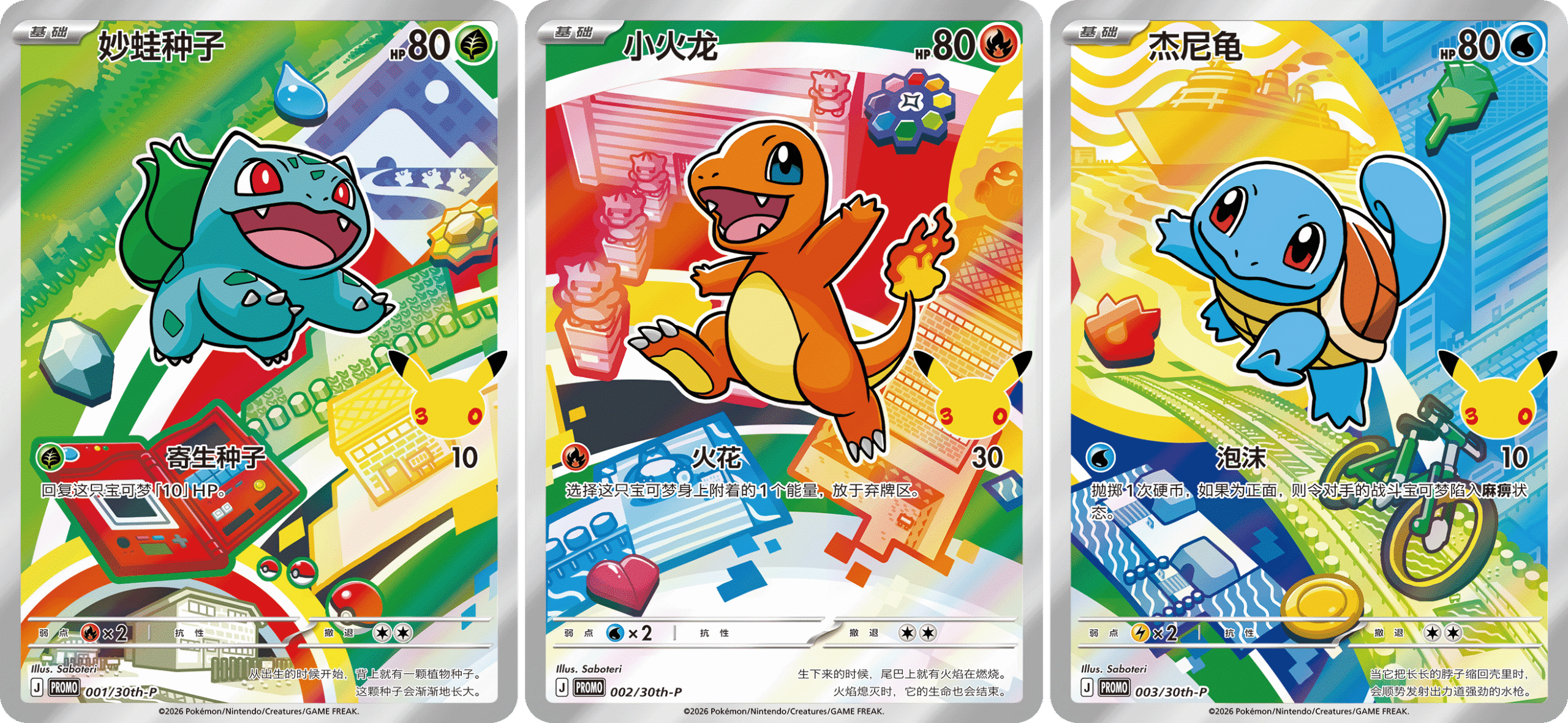In this joyous year, 30th Anniversary Celebration Starter Pokémon Special Art Rare Card Set Vol. 1 will launch first for Trainers on March 20.Each set includes: